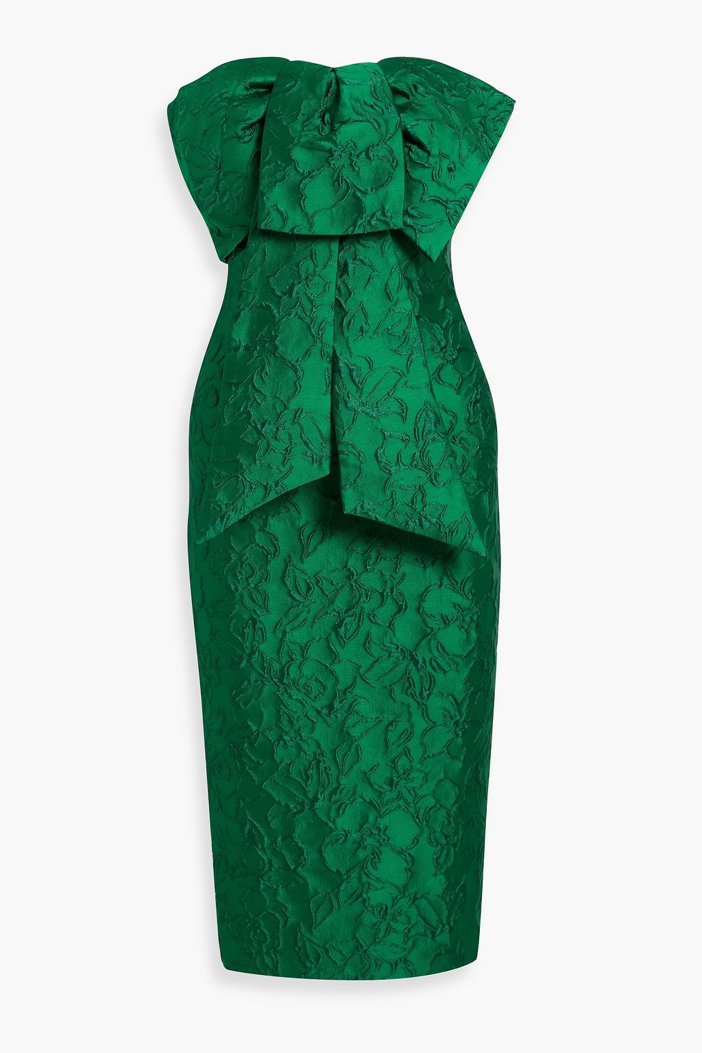 Envision your night in Badgely Mishka’s stunning strapless midi dress. Made from a textured cloqué with a romantic bow in front, it’s exactly the kind of dress that looks best by candlelight. Wear with luxurious accessories, like diamond earrings and a velvet clutch.