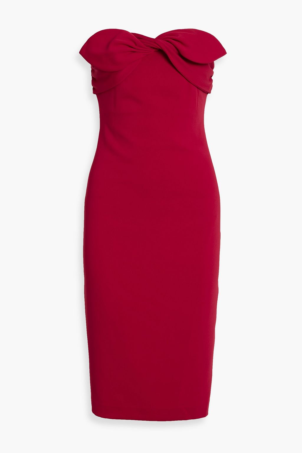 This midi dress is an absolute stunner from Badgley Mischka. The strapless cut and knot-like twist create a bold, curve-hugging silhouette in smooth crepe. Wear it to a wedding or special dinner with minimalist gold jewelry.