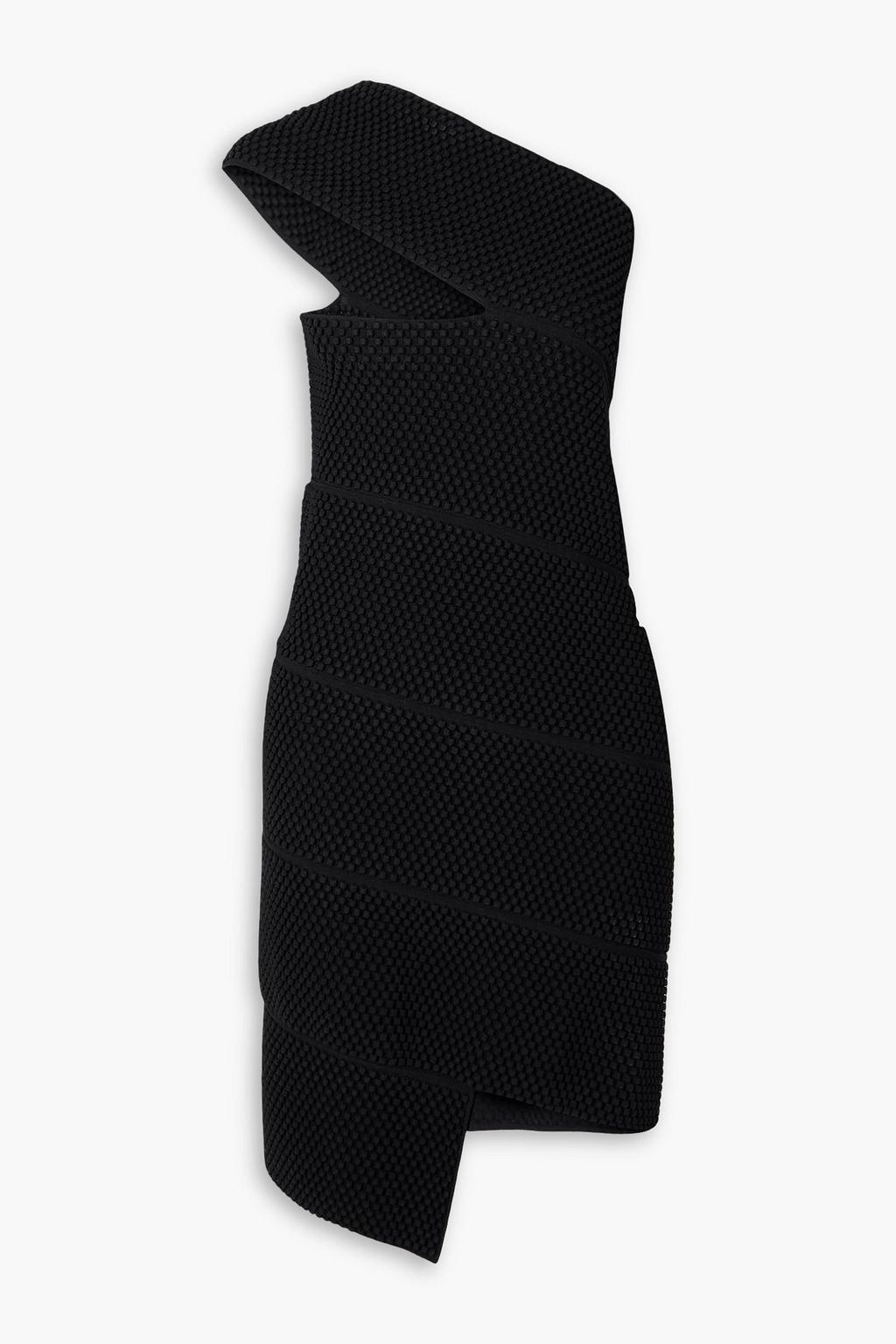 Bottega Veneta's little black dress is simple but striking thanks to the asymmetric cut and bobbly texture. Just add a glossy orange-red lip and heels to achieve the runway look.