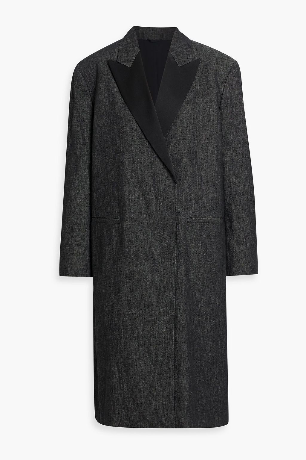 Concealed button fastenings through double-breasted front