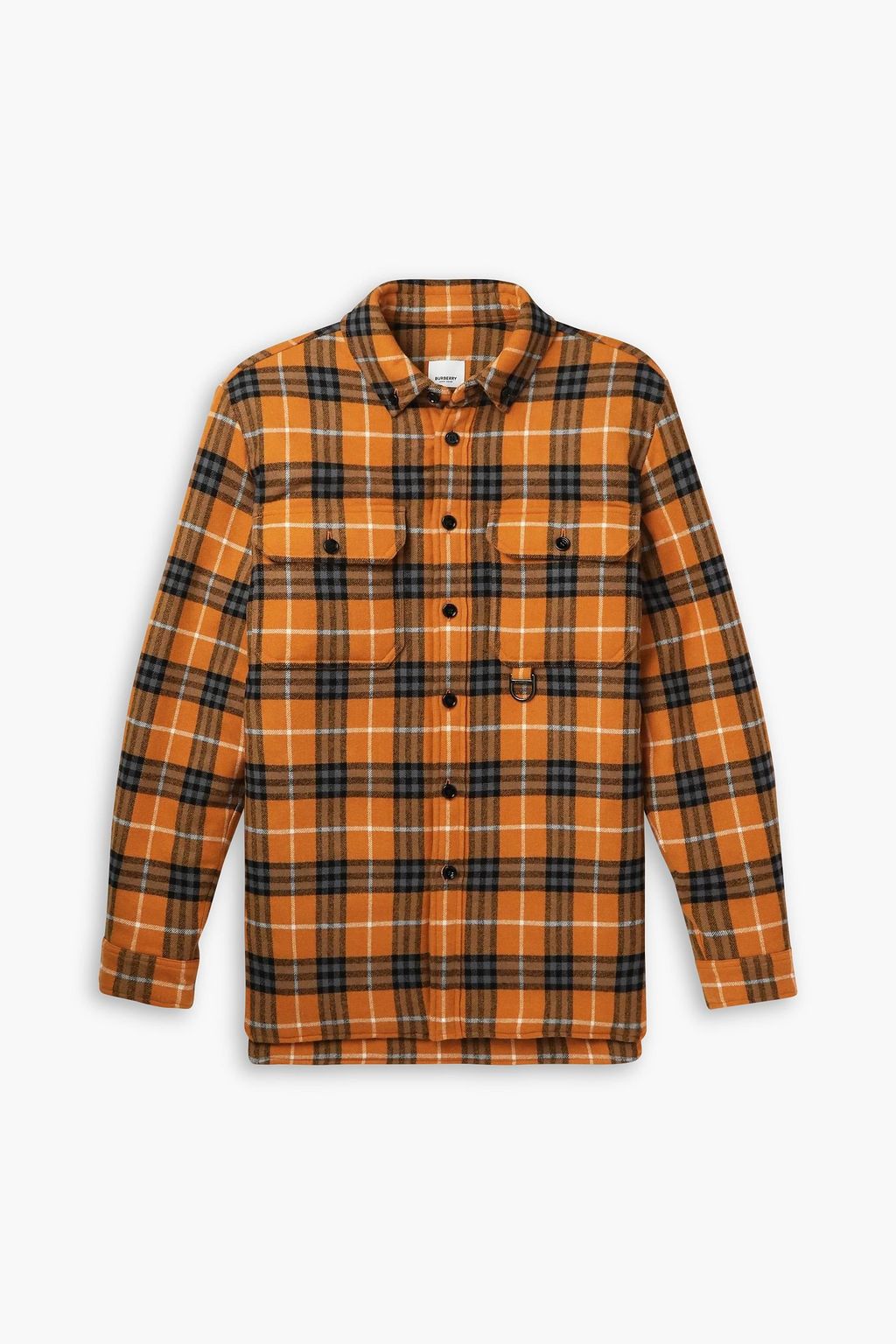 Burberry devotees will appreciate the updated house check on this shirt jacket in shades of orange, black and white. It's been made from a wool and cotton-blend and lightly padded for additional warmth.