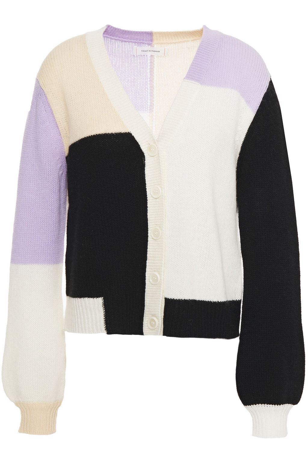 Color-block wool and cashmere-blend cardigan
