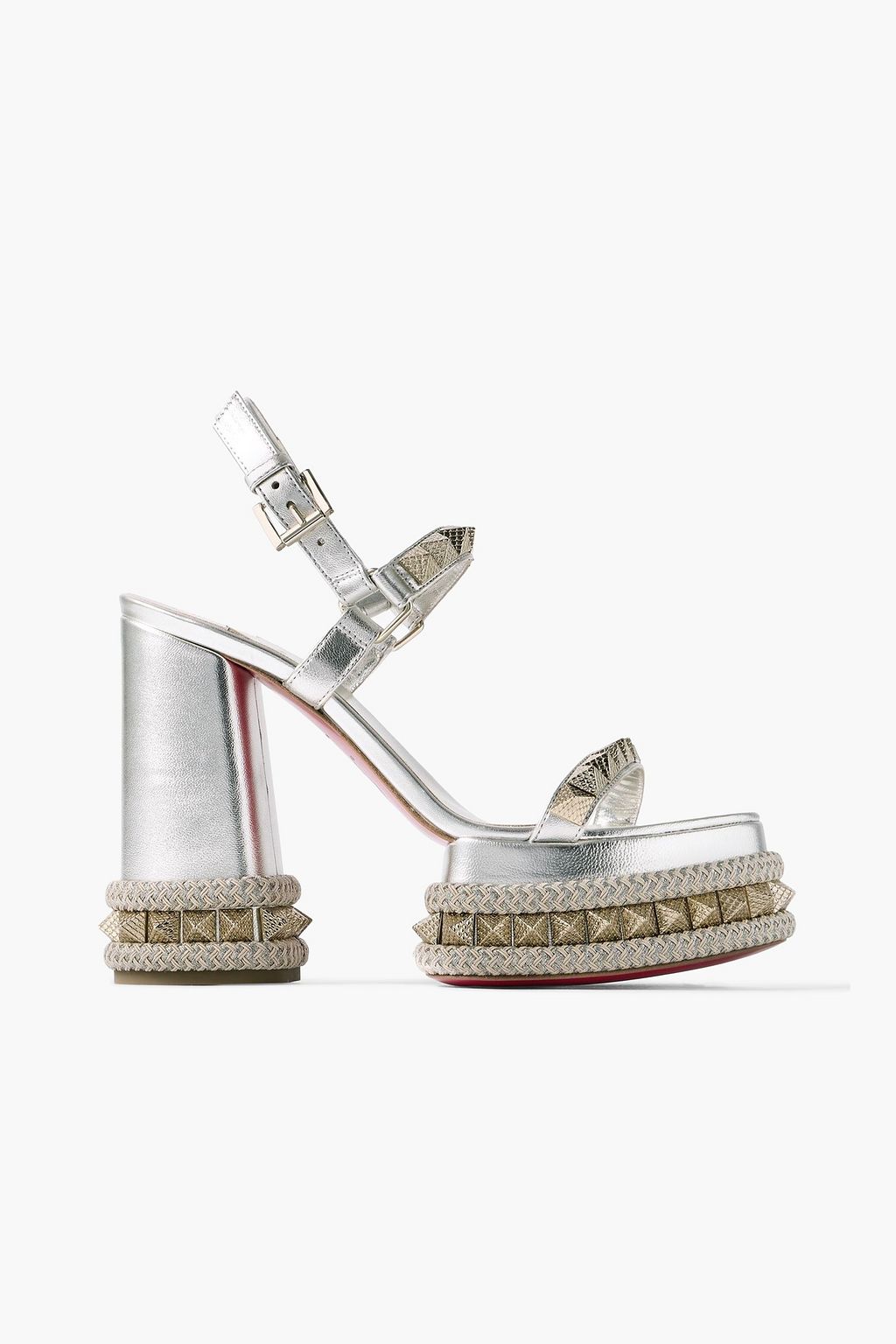 CHRISTIAN LOUBOUTIN Superclou 130 braid-trimmed studded metallic leather platform sandals