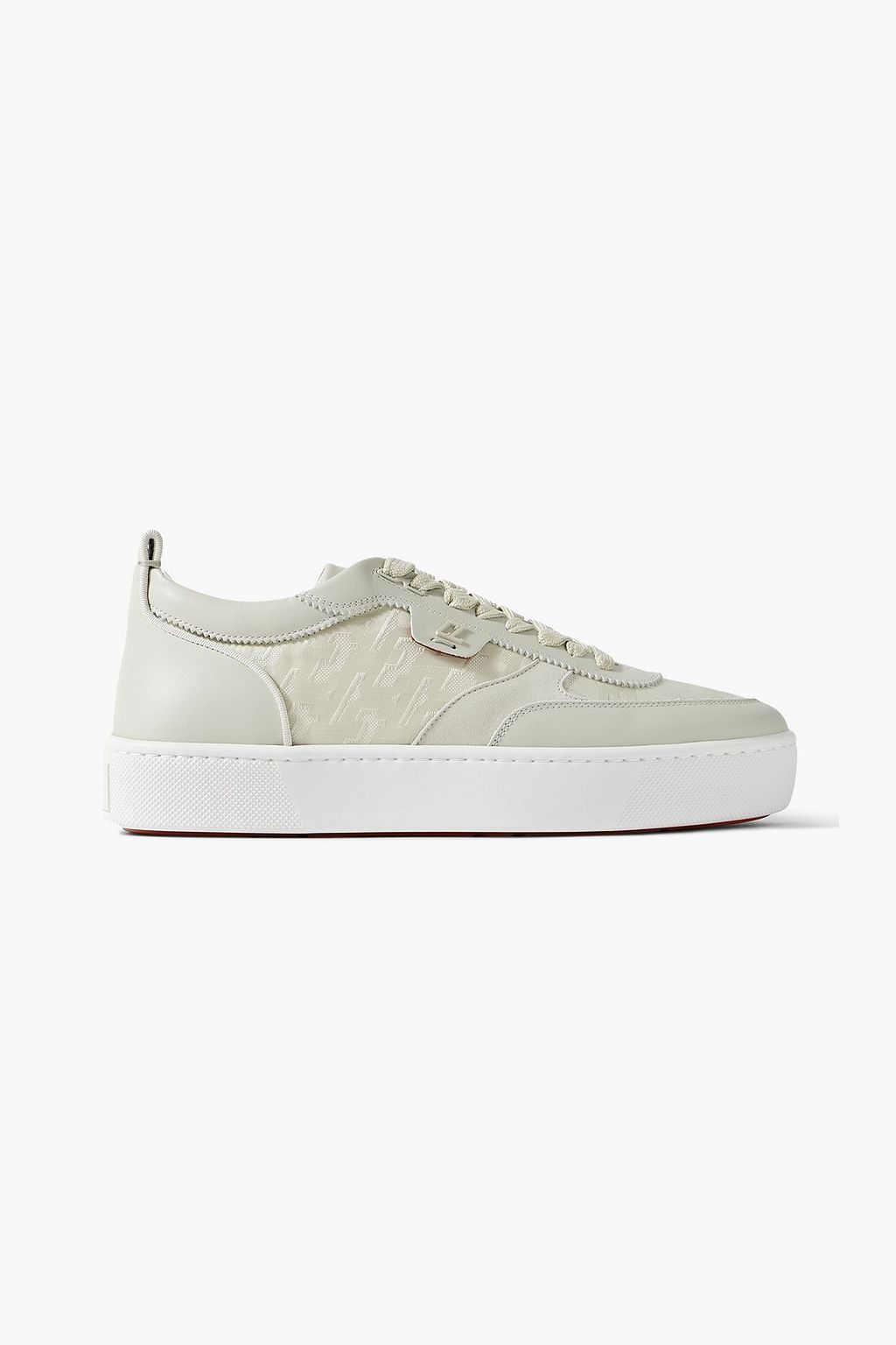 CHRISTIAN LOUBOUTIN Happyrui suede-trimmed leather and canvas-jacquard sneakers