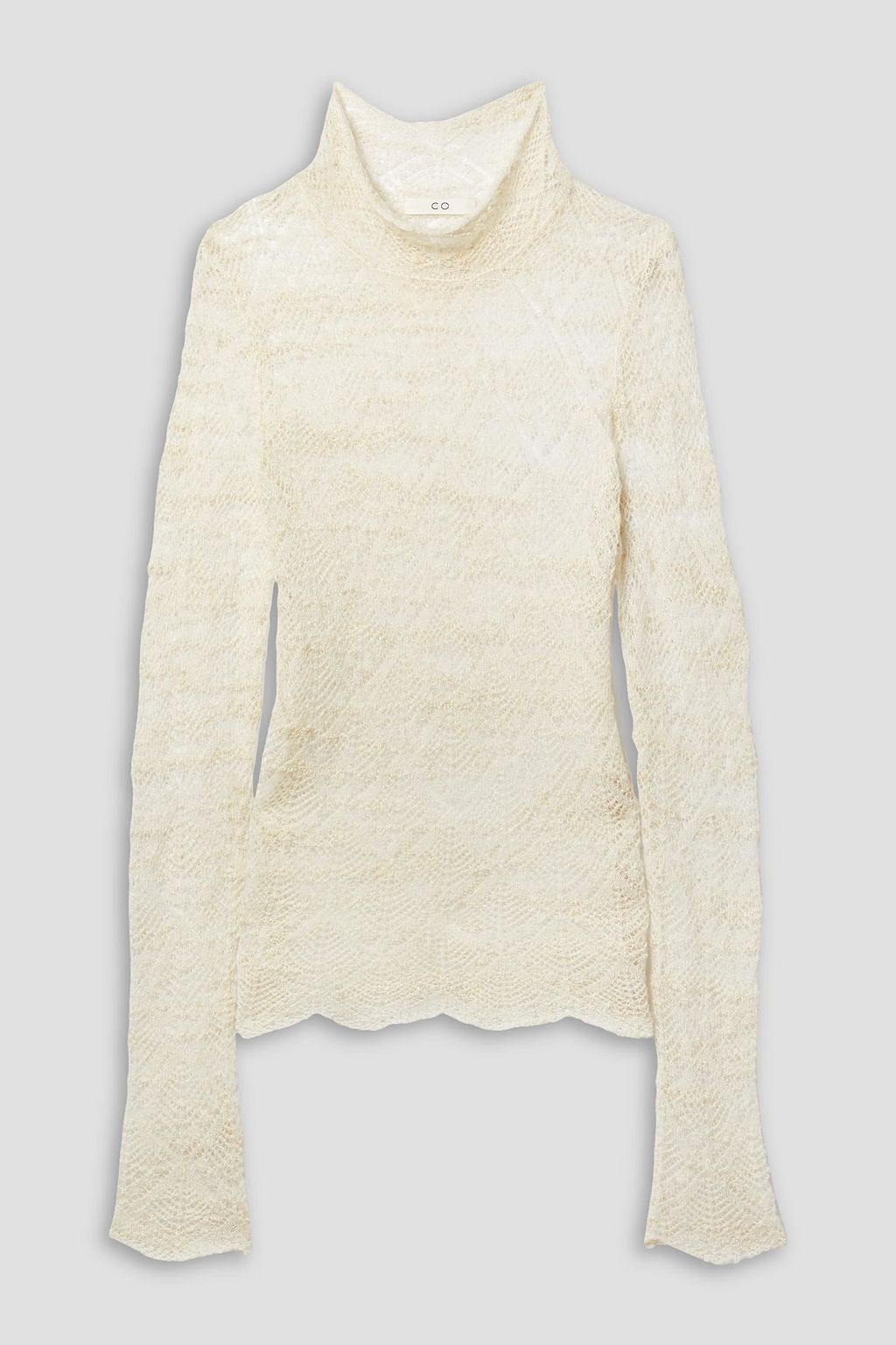 Co's sweater is knitted in an intricate diamond motif. Blended with breathable linen, cozy wool and tactile mohair, it has a lightweight, open construction and slim fit complete with scalloped edges and a mock neckline. Layer yours over a camisole or bralette for coverage.