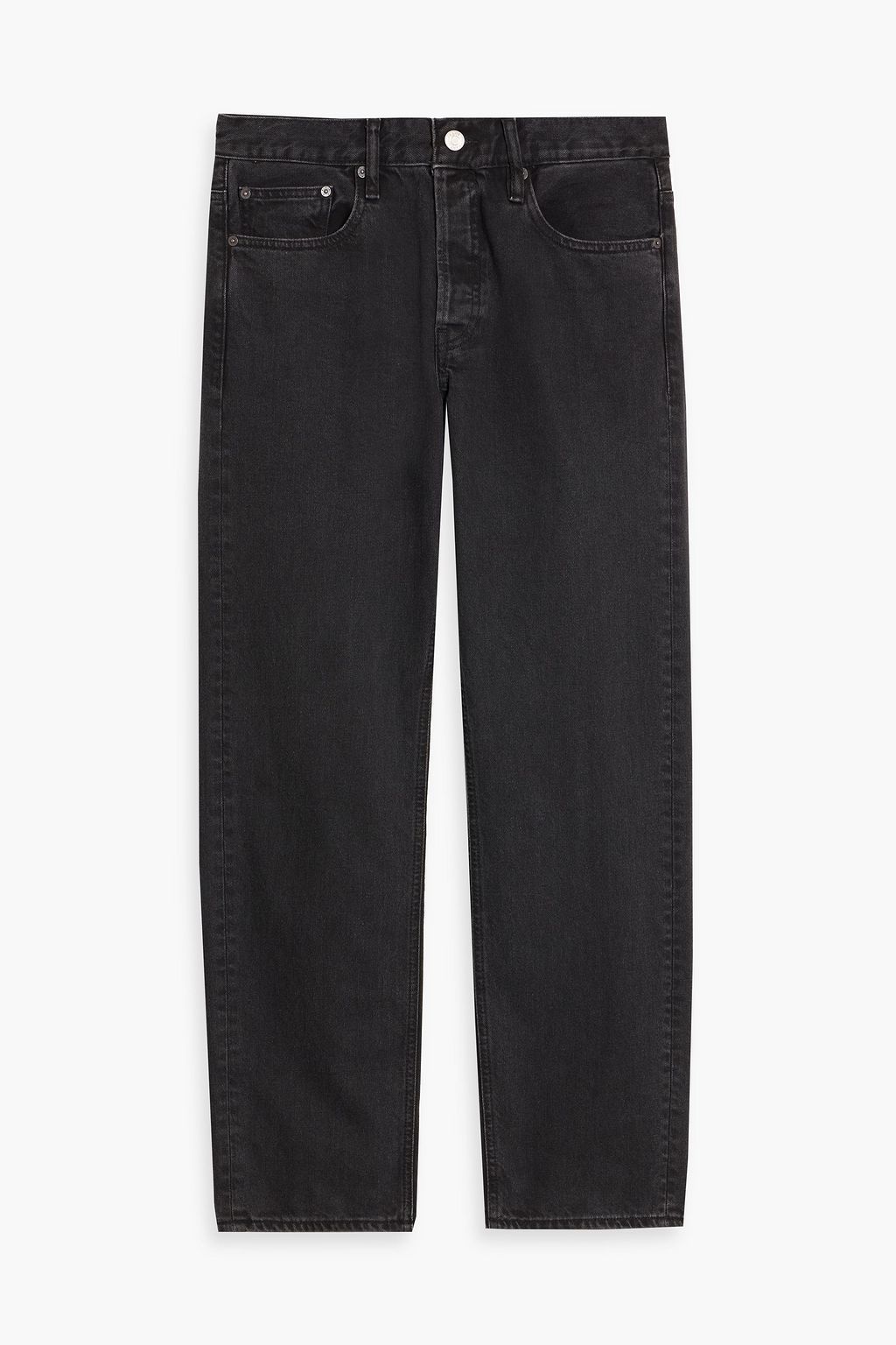 - Straight leg, mid-rise style