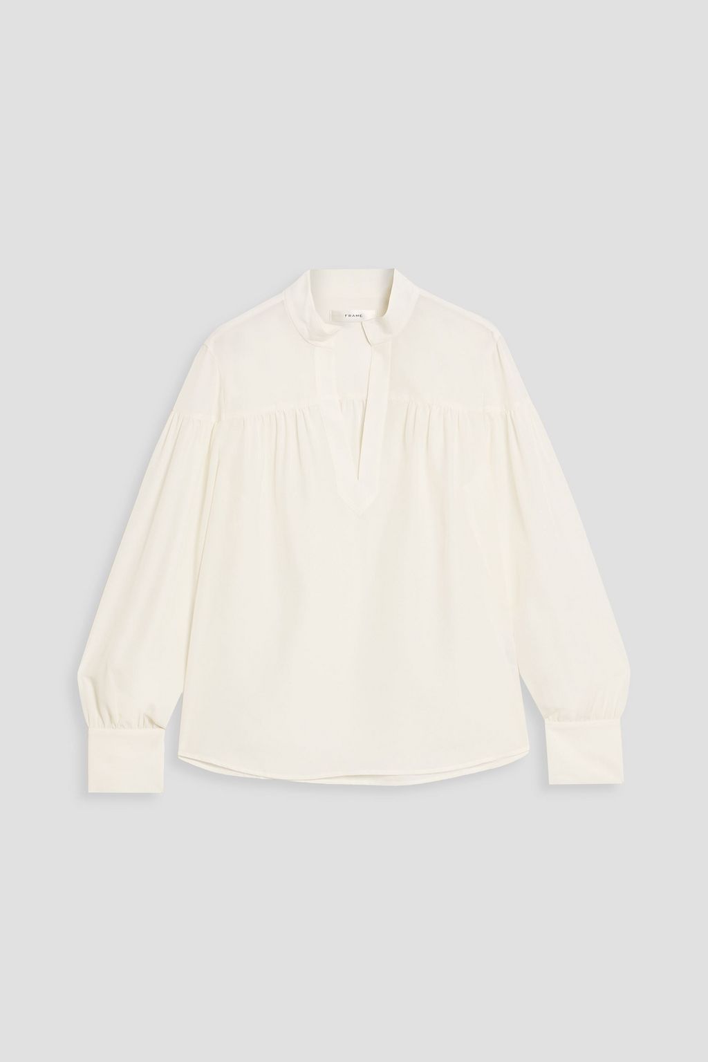 FRAME Gathered satin-crepe blouse
