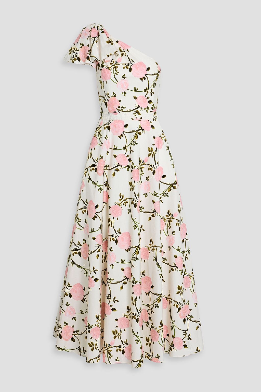 GIAMBATTISTA VALLI One-shoulder bow-detailed floral-print cotton-poplin maxi dress