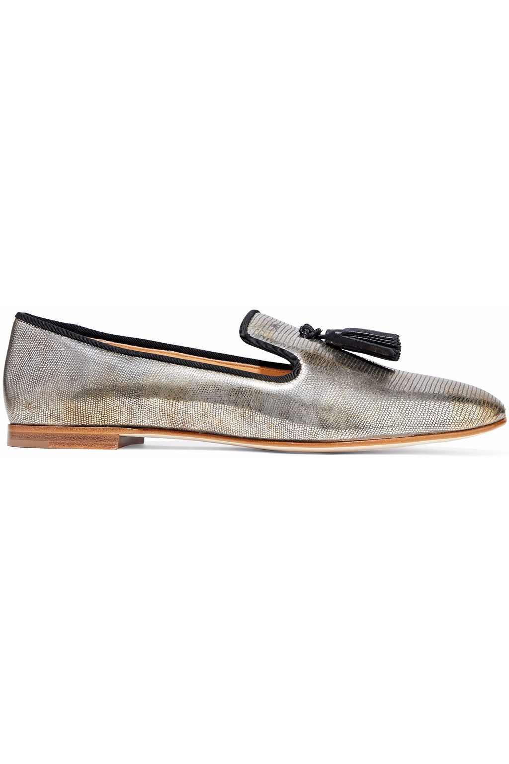 • GIUSEPPE ZANOTTI Dalila metallic lizard-effect leather slippers