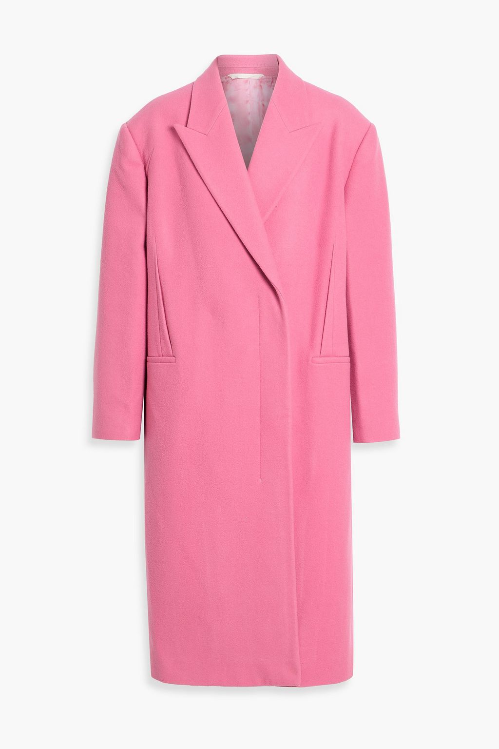 Concealed button fastenings through double-breasted front