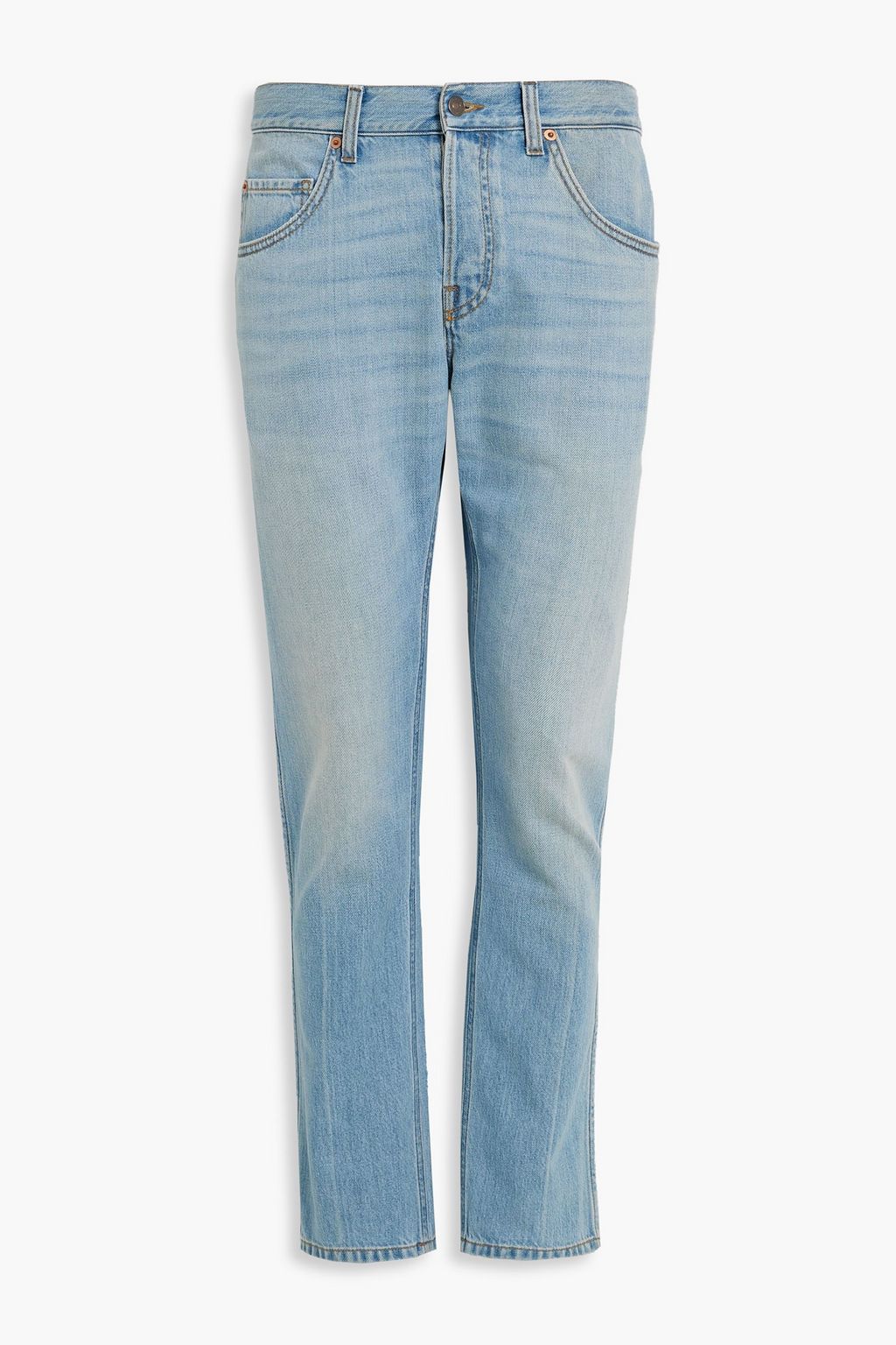 - Straight leg, mid-rise style