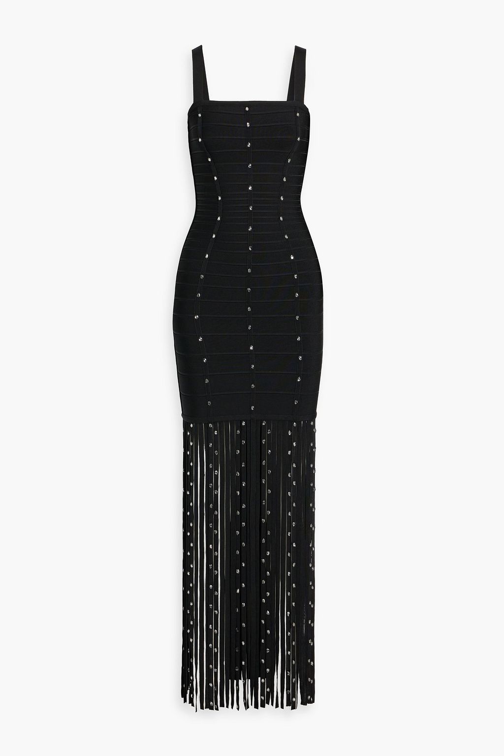 Hervé Léger’s ‘Laurel’ gown is a diva, and she knows it. Made from the label’s curve-loving bandage, it’s fringed maxi hemline is total drama. Match the sparkling crystals with metallic accessories – you won’t need anything else.
