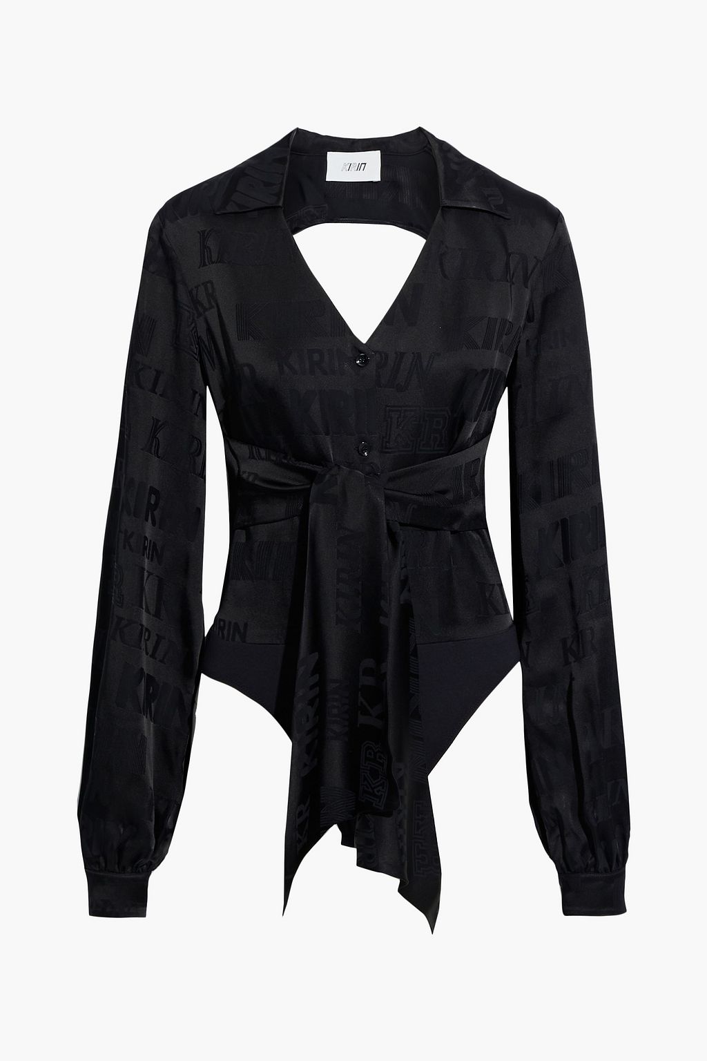 KIRIN PEGGY GOU Cutout belted satin-jacquard bodysuit