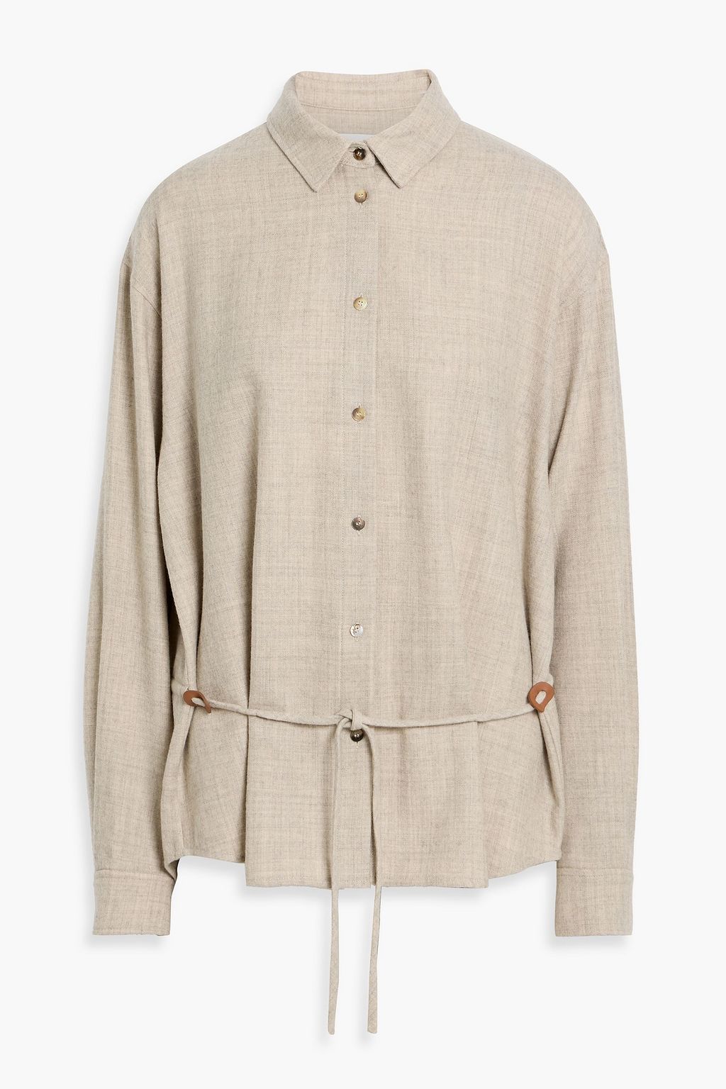 - Designed for a loose fit, use the tie belt to cinch in at the waist