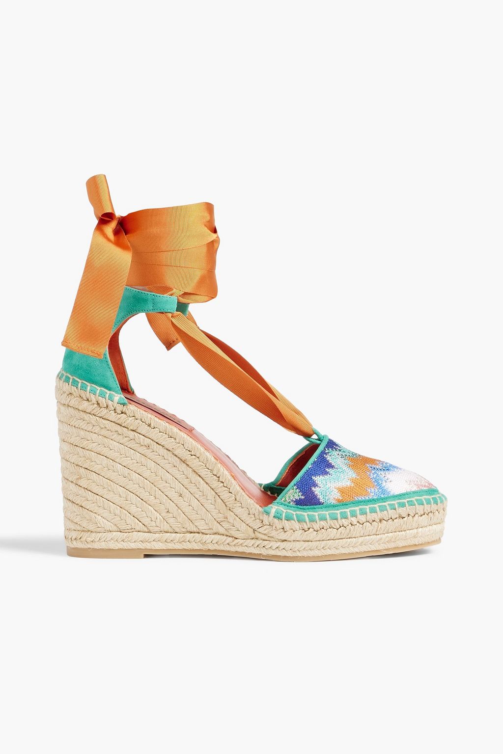 Crochet-knit wedge espadrilles