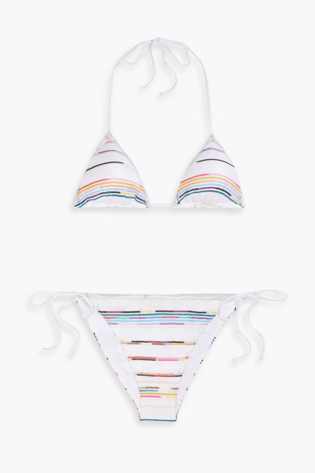 Striped crochet-knit triangle bikini