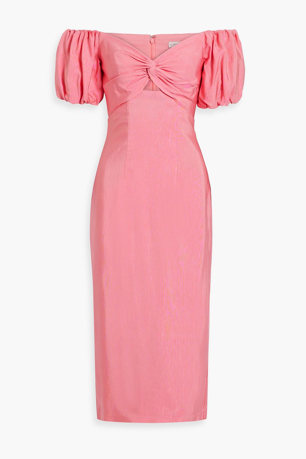 ML MONIQUE LHUILLIER Off-the-shoulder cutout twisted shantung midi dress