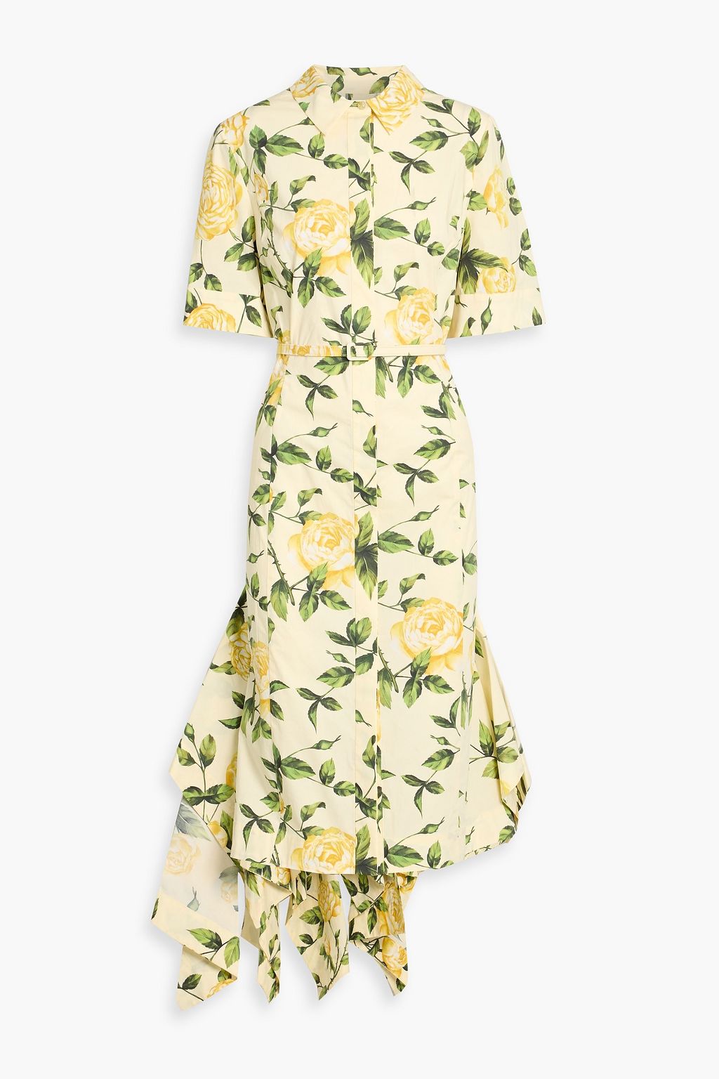 OSCAR DE LA RENTA Asymmetric floral-print cotton-blend poplin midi shirt dress