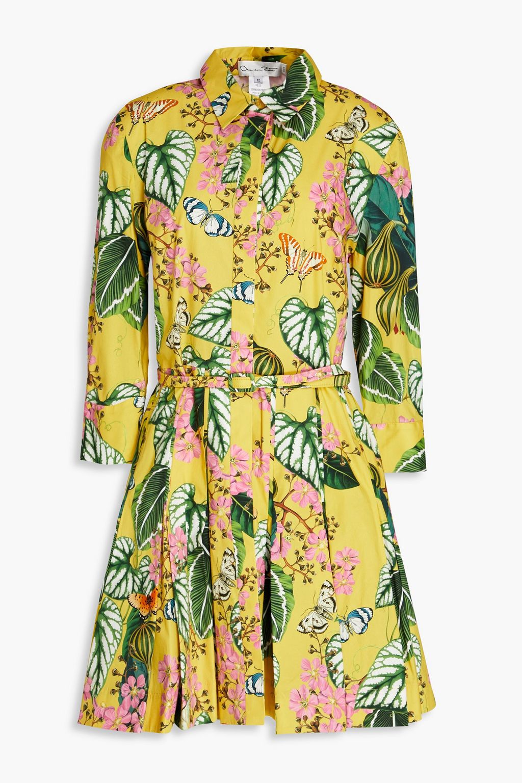 OSCAR DE LA RENTA Pleated floral-print stretch cotton-poplin mini shirt dress