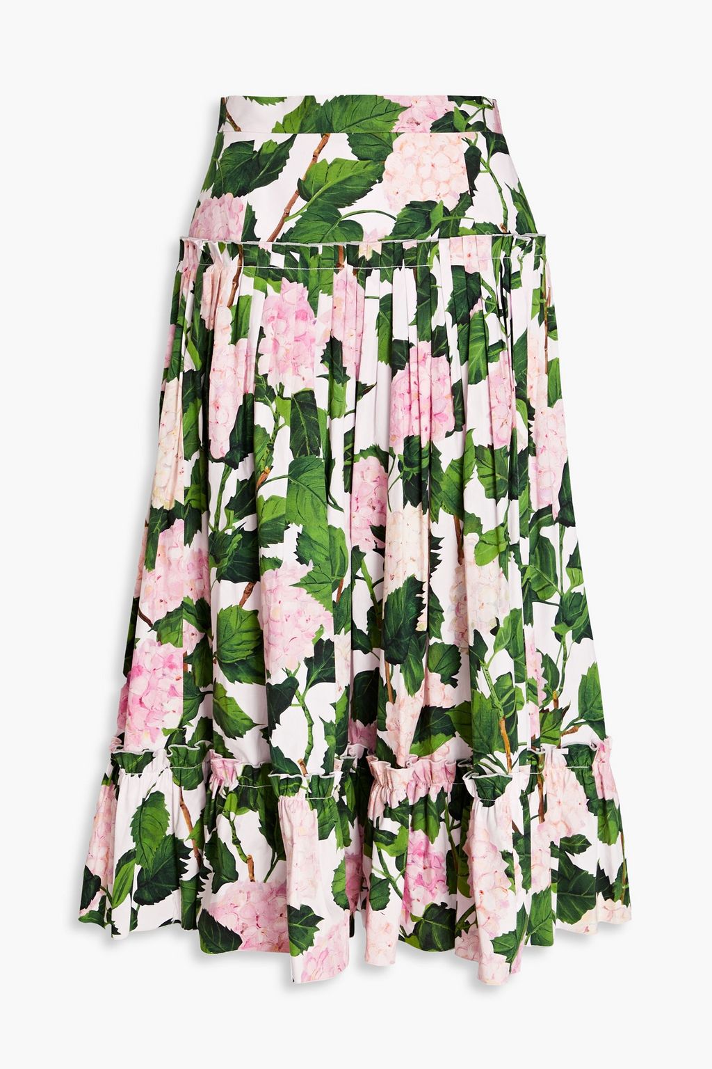 OSCAR DE LA RENTA Pleated floral-print stretch cotton-poplin midi skirt