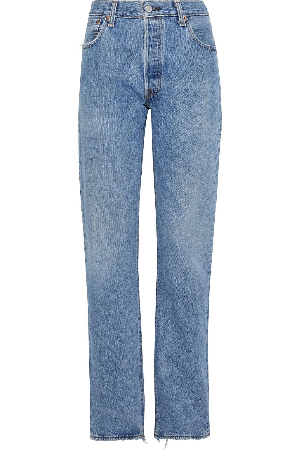 RE/DONE WITH LEVI'S Frayed faded high-rise straight-leg jeans
