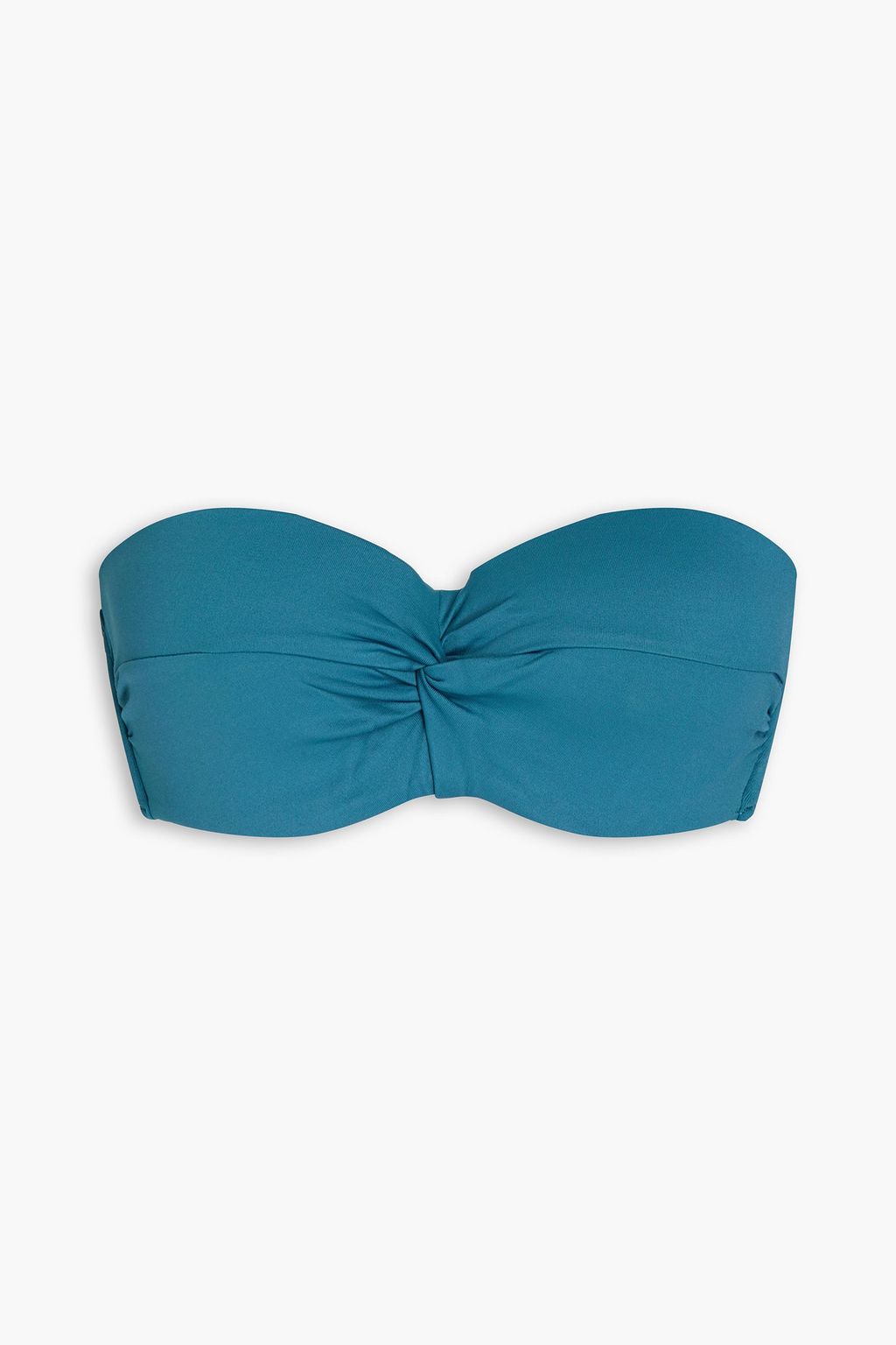 Twisted gathered bandeau bikini top