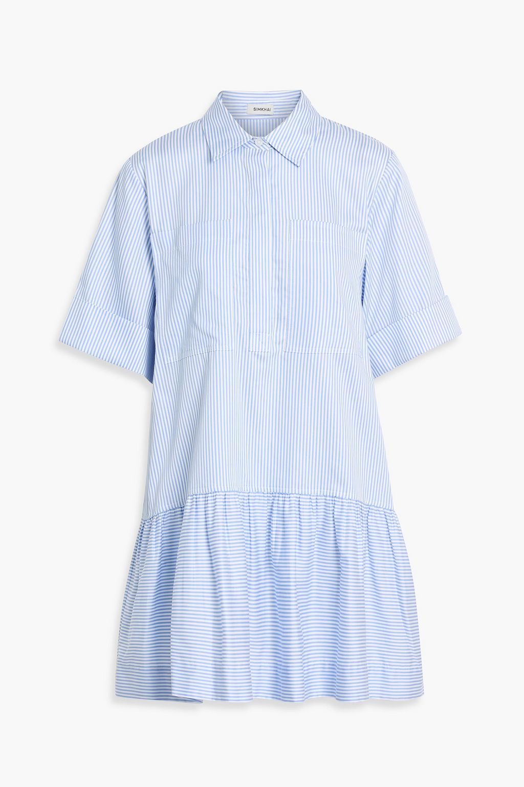 SIMKHAI Cris striped cotton-poplin mini shirt dress