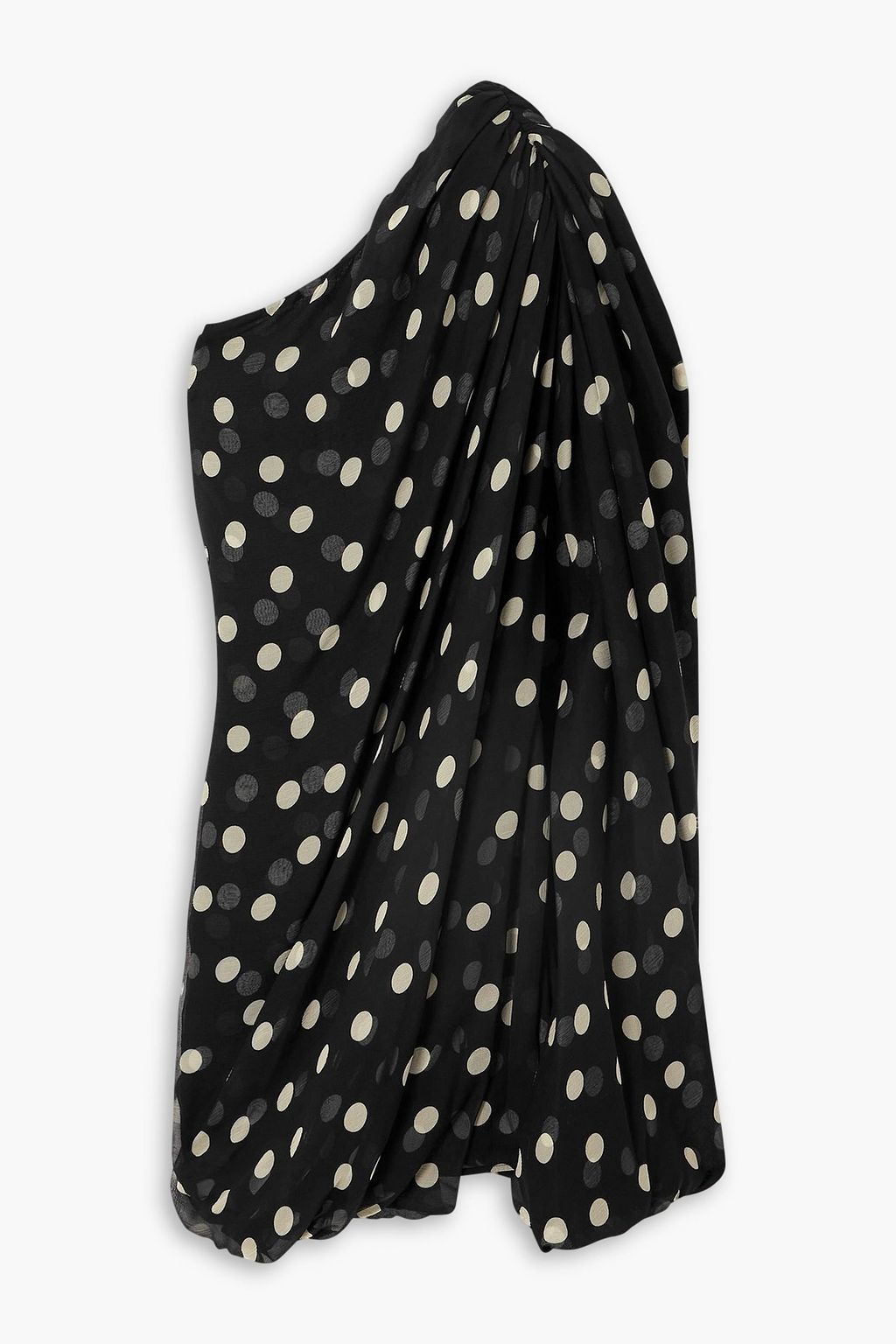 STELLA MCCARTNEY One-shoulder draped polka-dot silk-voile mini dress