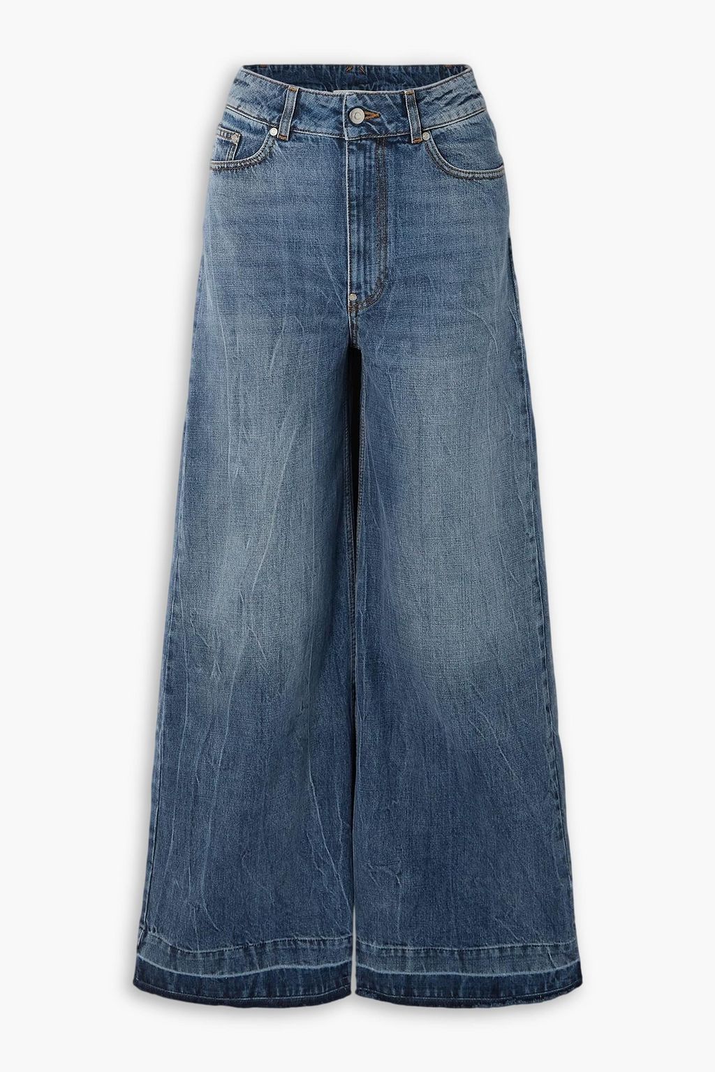Stella McCartney often takes inspiration from her own archives, as well as "eclectic, ageless" styles from her parents. These jeans have a generous wide-leg shape with frayed hems. They're whiskered and faded in all the right places for a vintage feel.