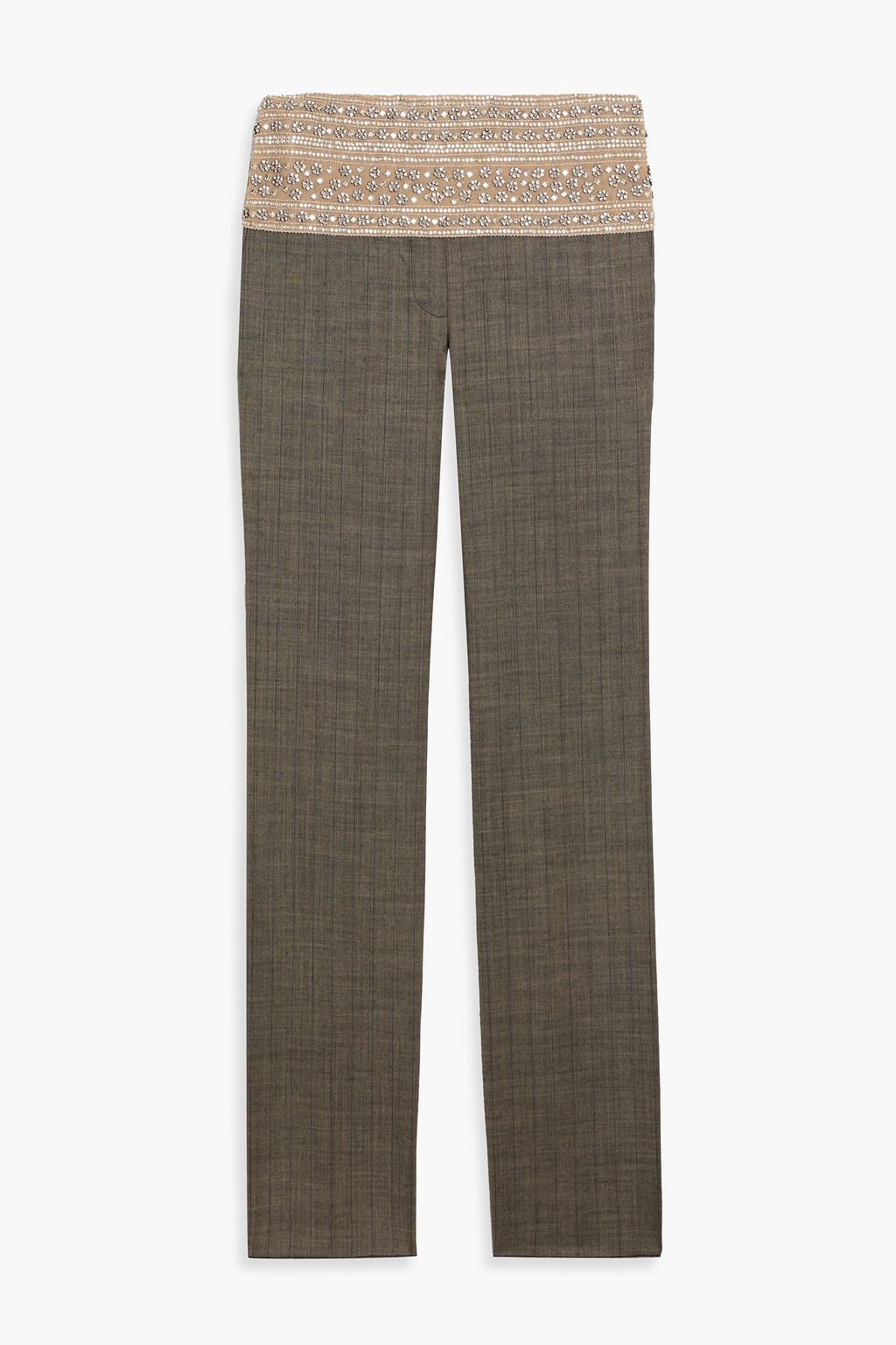 STELLA MCCARTNEY Embellished tulle and pinstriped wool-blend slim-leg pants