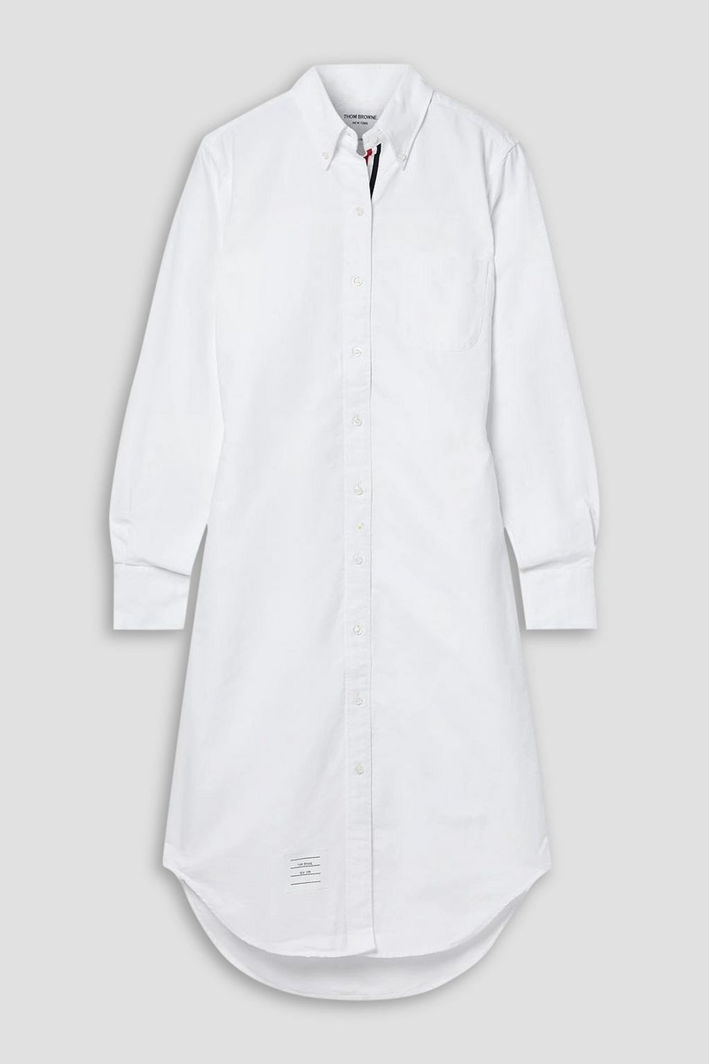Thom Browne's shirt dress is the kind of style that makes you look effortlessly chic and put-together. Tailored from cotton Oxford, it has the label's signature grosgrain stripe along the button-fastening placket and logo patch at the curved hem. Wear yours solo with sneakers or loafers.