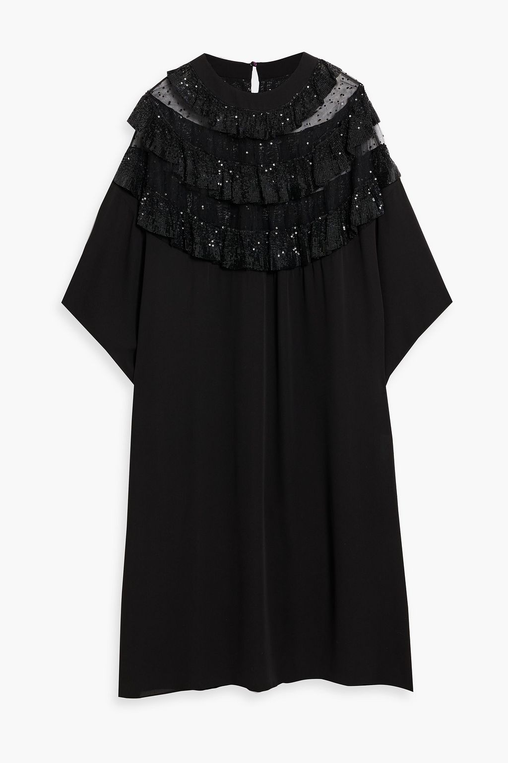VALENTINO GARAVANI Embellished point d'esprit-paneled crepe de chine midi dress