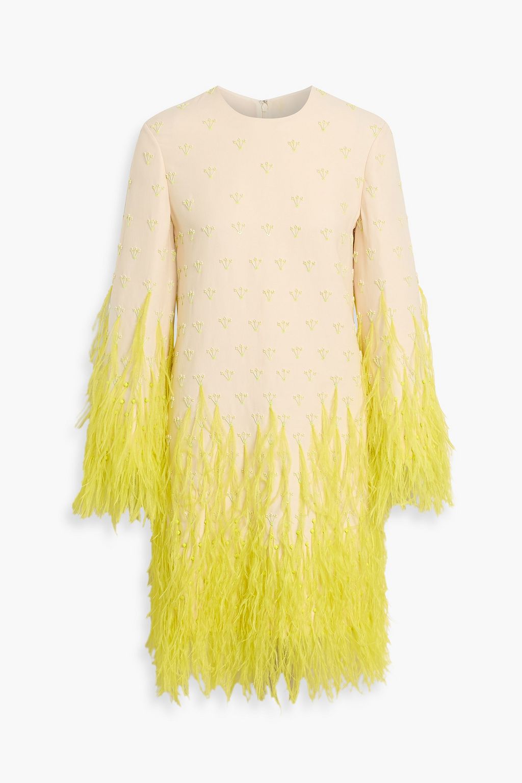 Decorated with brightly colored ostrich feathers, Valentino Garavani’s mini dress is the life of the party. Intricate beading and sequins are embroidered into the wool and silk-blend crepe for added sparkle. Show off the wispy feathers with your best shake and shimmy on the dance floor.