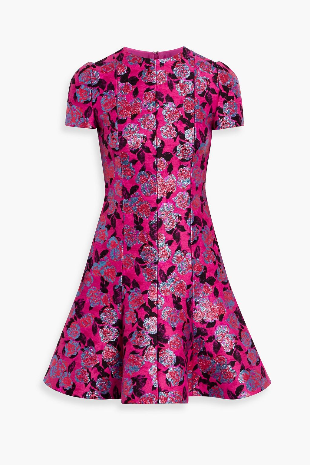Valentino Garavaniās metallic mini is blooming with bold pinks, shimmering blues and main character energy. The sculpted silhouette and flared hem bring just the right amount of drama, making this the perfect choice for birthday bashes and other celebrations where you're the star of the show. Just add a matching lip and high-shine accessories.