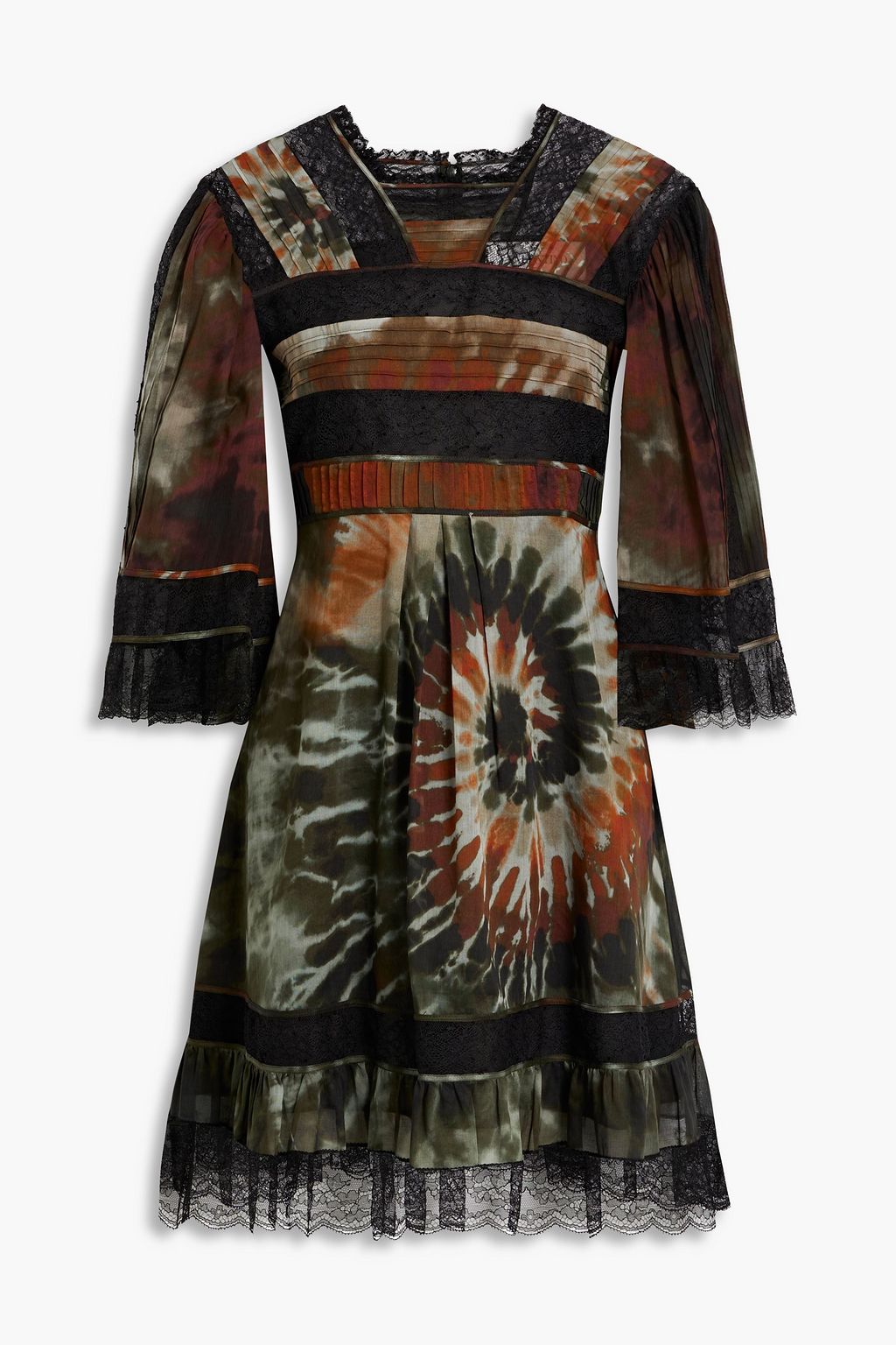 Lace-paneled tie-dyed cotton-voile mini dress