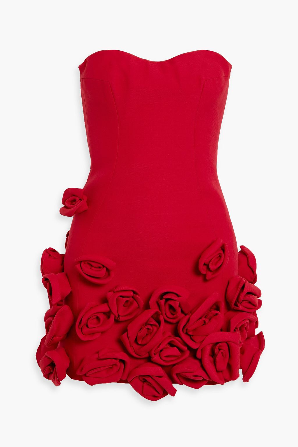 VALENTINO GARAVANI Strapless floral-appliquéd wool and silk-blend crepe mini dress