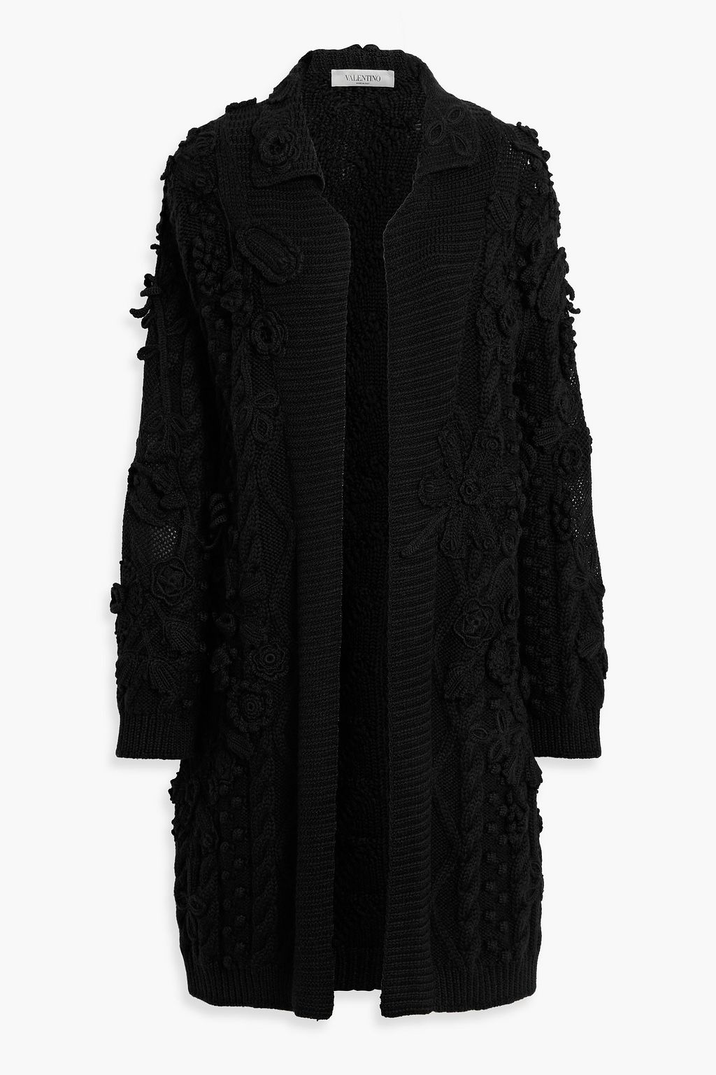 VALENTINO GARAVANI Pompom-embellished embroidered cable-knit wool cardigan