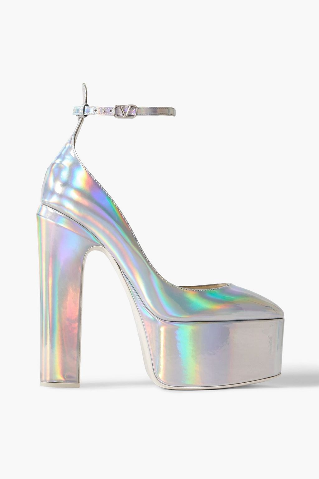 Valentino Garavani's shoe collections always hit the high notes – literally. These elegant 155mm platform pumps are made from iridescent patent-leather that will work well for so many occasions.