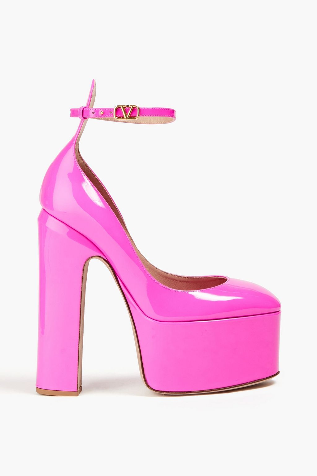 Love at first sight? We thought so with these exquisite 'Tan-Go' pumps from Valentino Garavani. Made from sleek patent-leather, they feature a chic almond toe and a buckle-fastening ankle strap decorated with a gold-tone logo for a final flourish.
