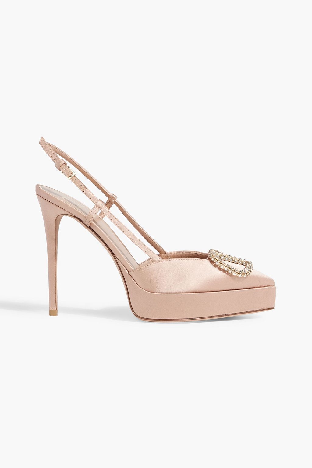 VALENTINO GARAVANI VLOGO Signature crystal-embellished satin platform slingback pumps