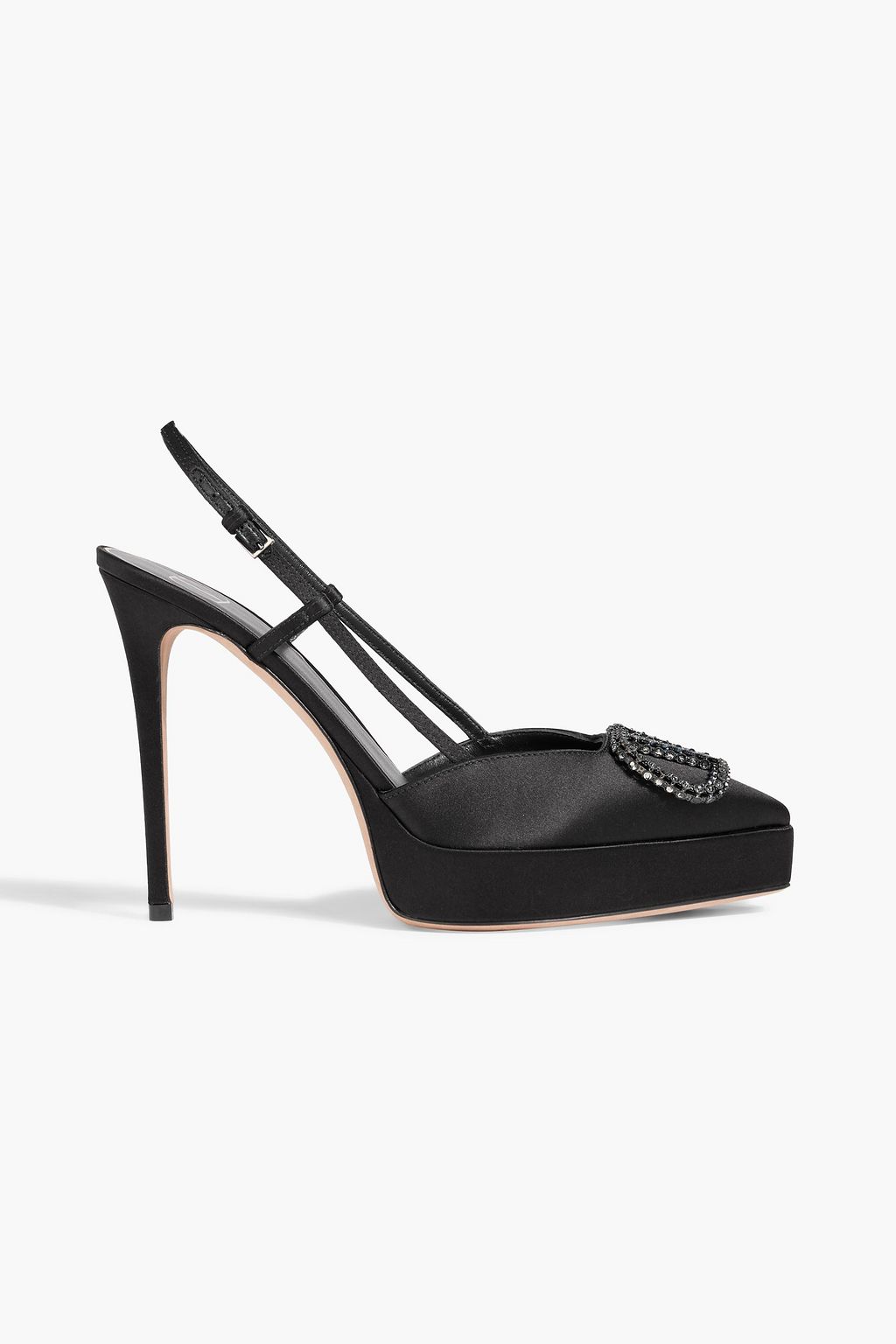 VALENTINO GARAVANI VLOGO Signature crystal-embellished satin platform slingback pumps