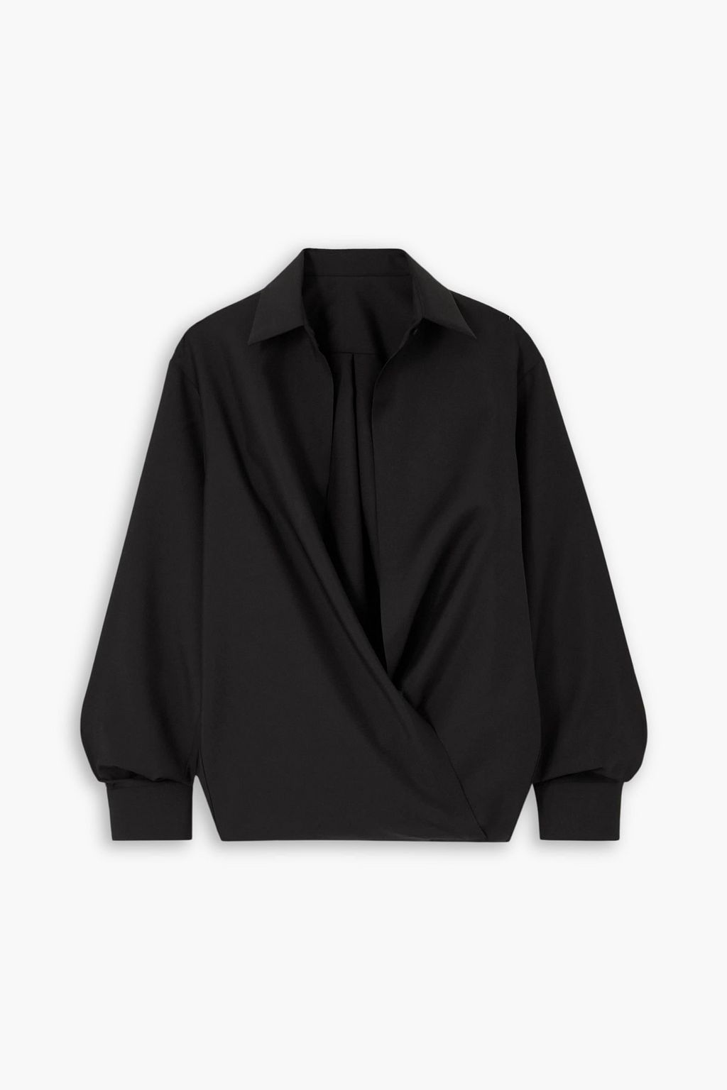 How to master undone elegance? Take note of Valentino Garavani's wrap top. It has a relaxed shirting collar and crossover front that leaves skin on show. Pair with tailored pants and a long pendant necklace.