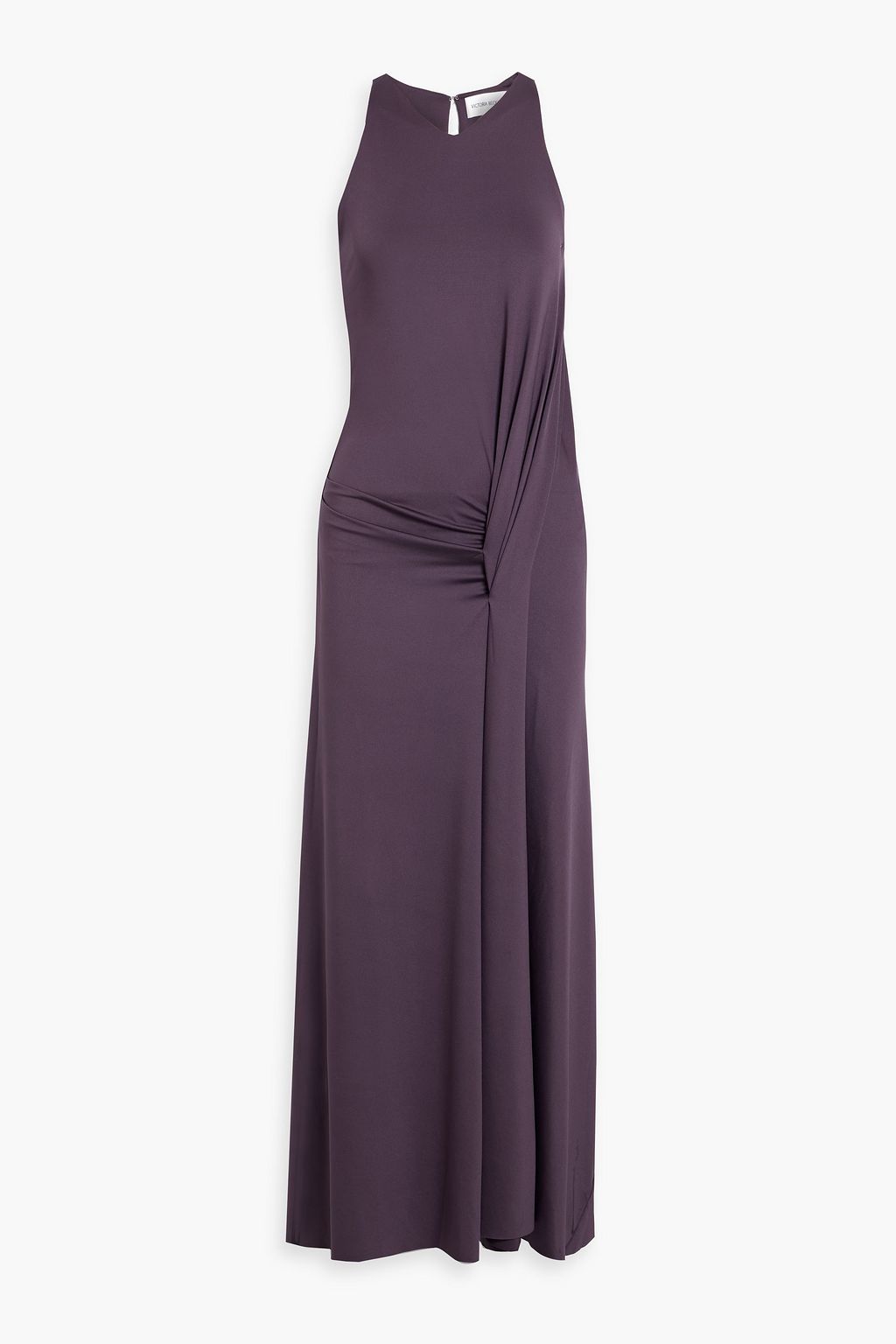 This Victoria Beckham design makes getting dressed easy. Draped stretch-jersey and an asymmetric hem give a polished yet effortless slink that frames the waist. Brilliant for after-work receptions — wear with mules and a boxed bag.