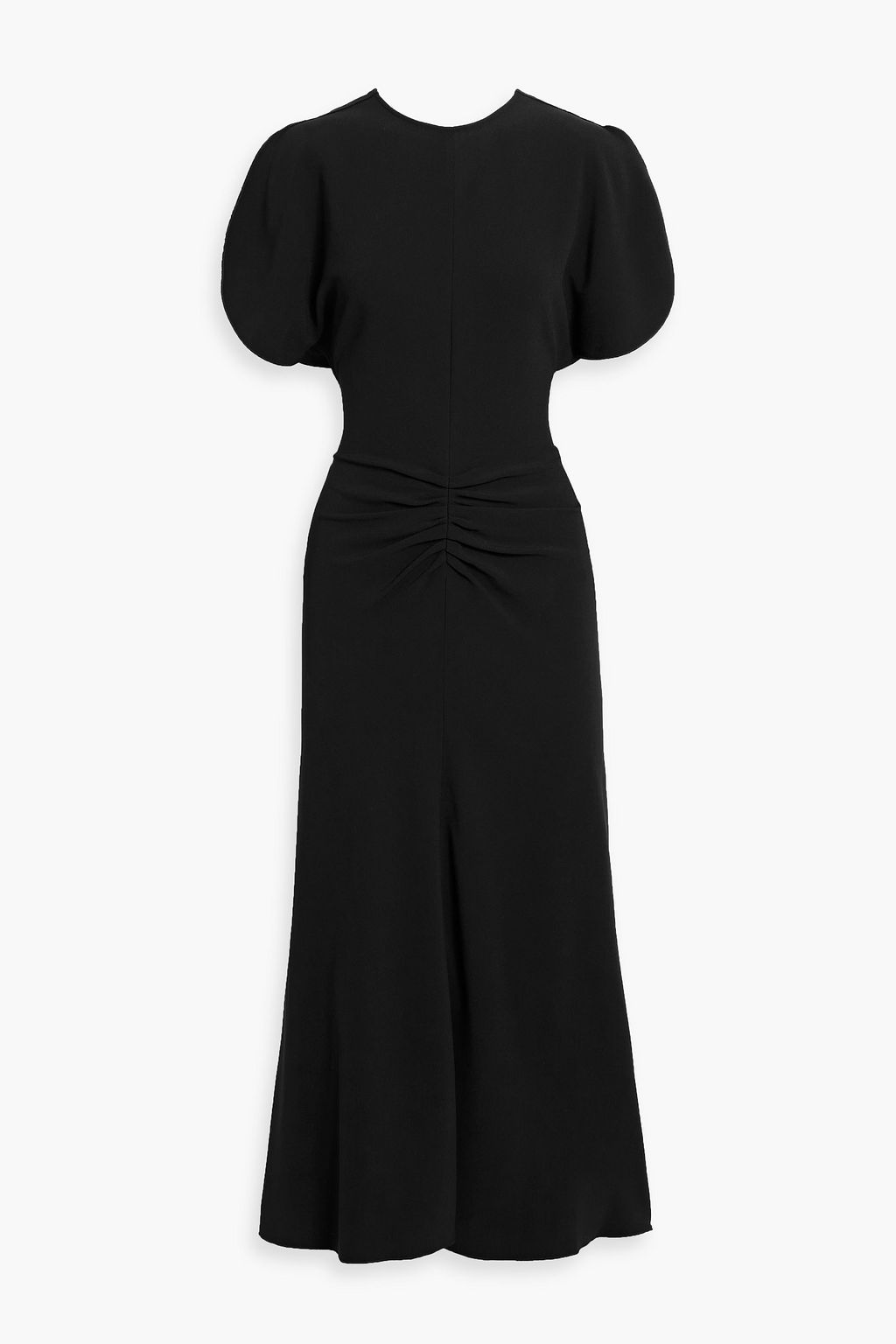 This Victoria Beckham midi is an absolute stunner. The gathered torso and puffed sleeves deliver modern, made-you-look drama in lustrous crepe that contours the waist. It’s perfect with a cateye and strappy heels for a romantic evening.