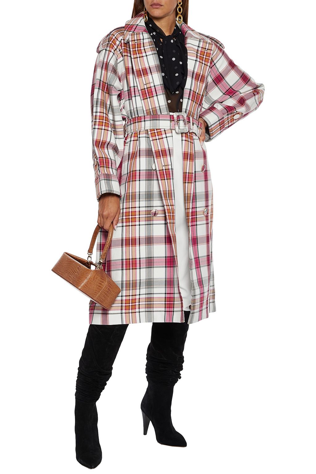 Checked cotton-blend gabardine trench coat