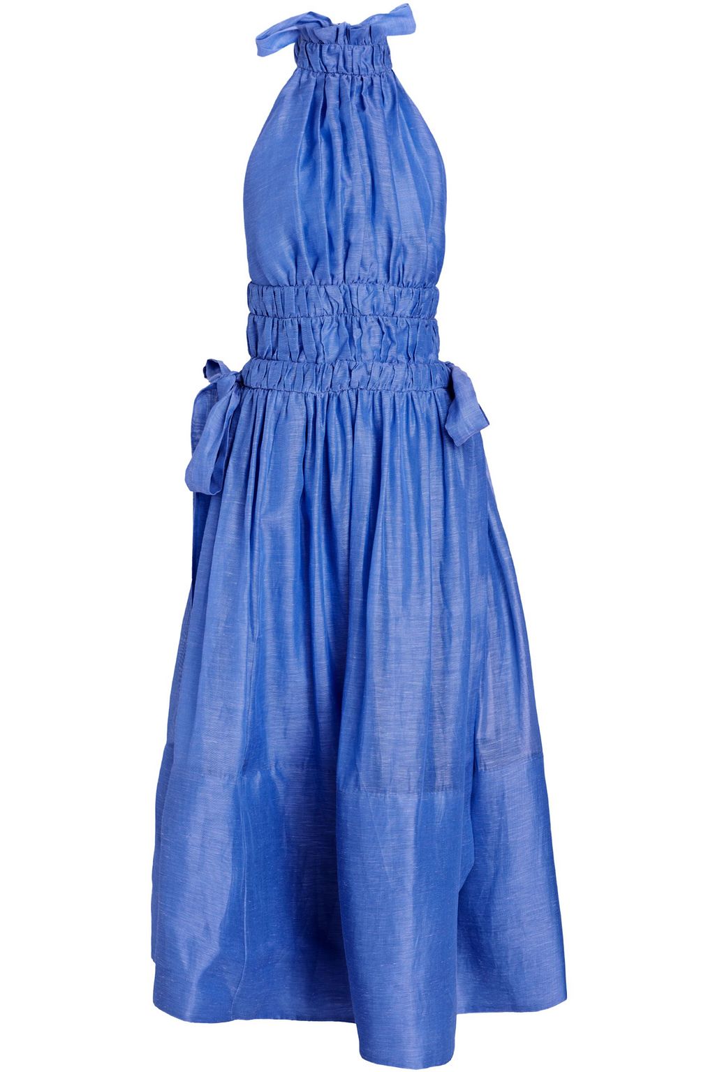 Linen and silk-blend gauze halterneck gown