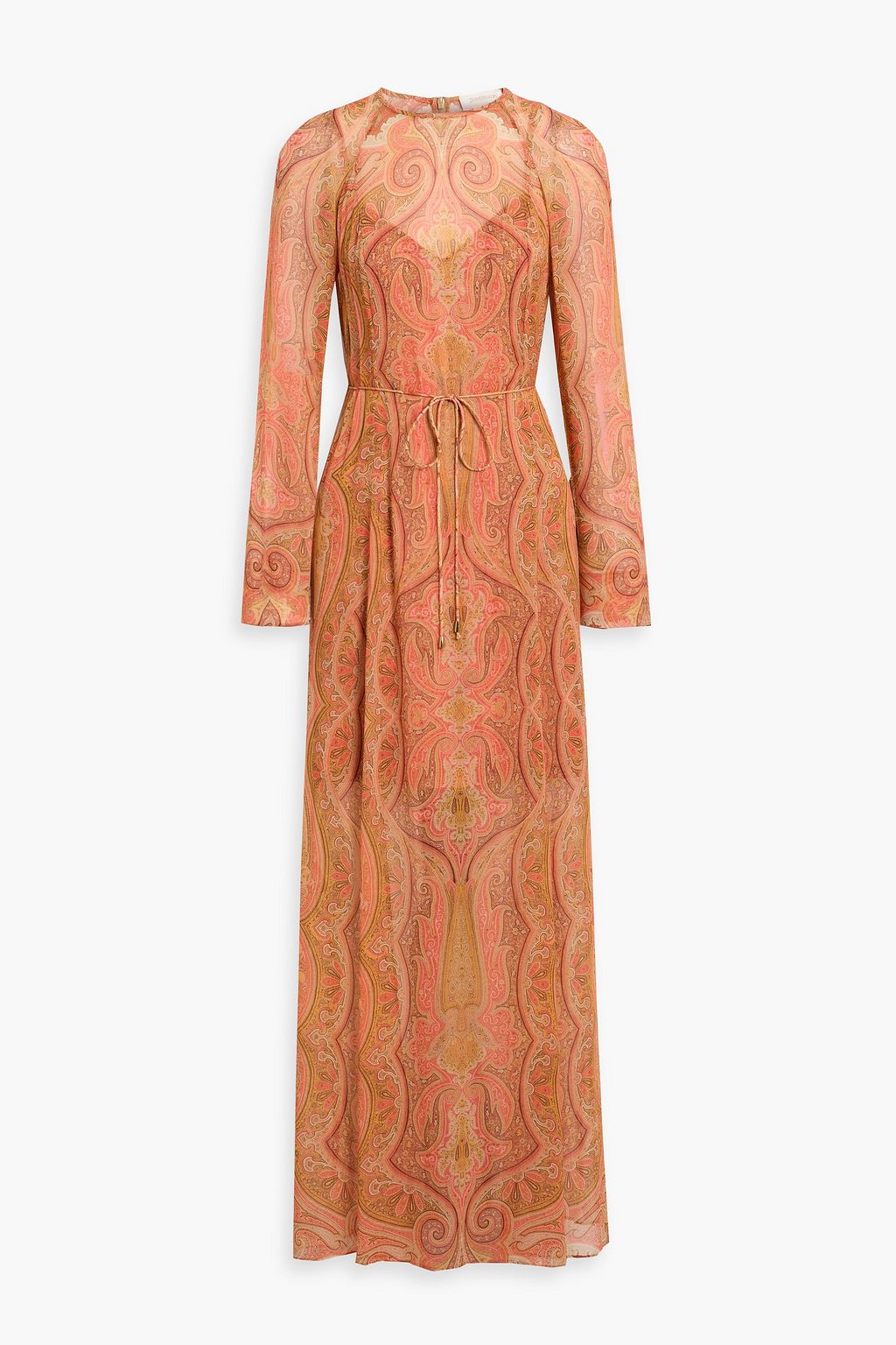 Zimmermannās paisley-print chiffon maxi is serving major modern bohemia, in sun-washed shades of peach, coral and marigold. Light as air, it's the kind of dress that floats from golden hour dinners to dancing barefoot in the sand ā but we love it just as much with a tall boot. Use the detachable waist tie to accentuate your figure.
