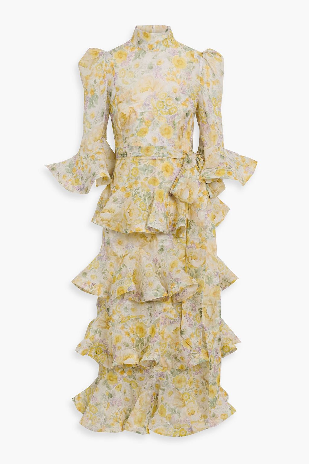 Welcome to the āZimmerverse,ā where floral prints and cascading ruffles are de rigeur. Made from the labelās signature linen and silk-blend gauze, Zimmermannās frothy ruffled midi is an ode to Australian sunshine, and ready for anything ā from showers and weddings to birthday celebrations and fun fĆŖtes.