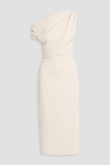 Adelaide one-shoulder feather-trimmed crepe midi dress