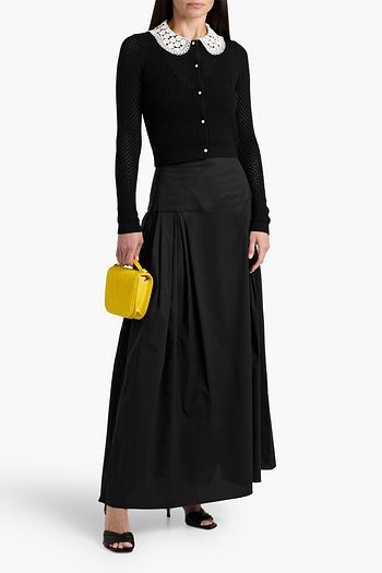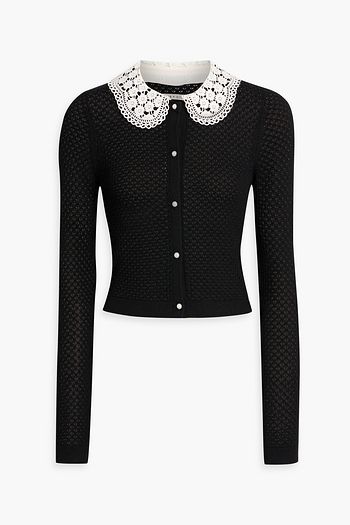 Lace-trimmed pointelle-knit wool-blend cardigan